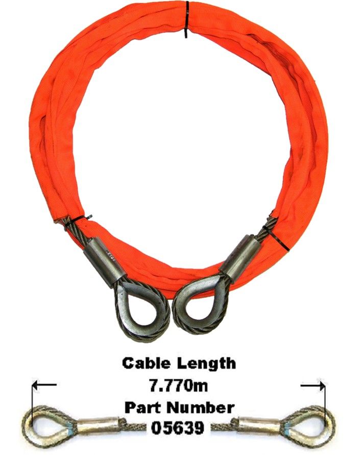 | Description: | Cable 7.77m Orange Sleeved c/w Eyelets | ||